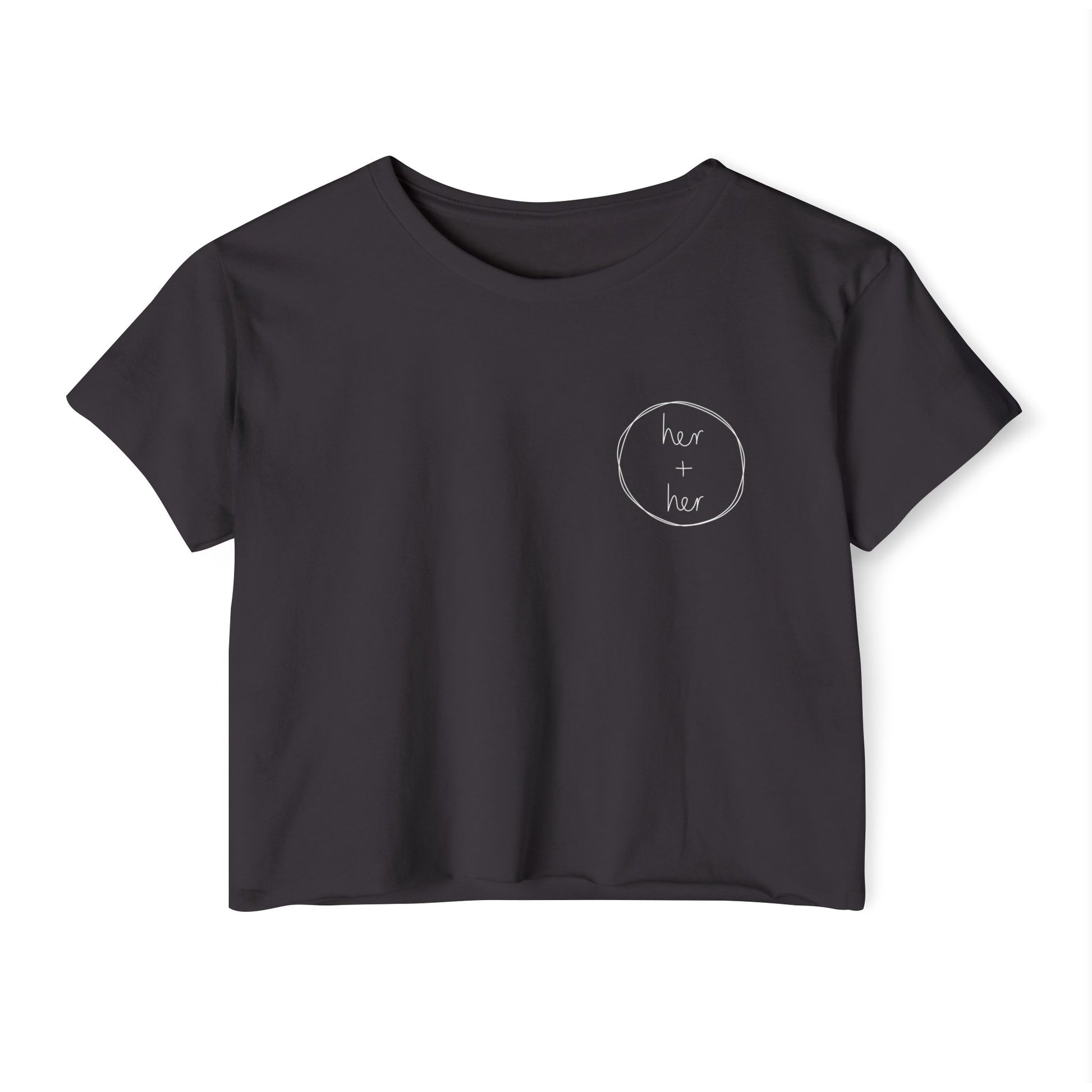 This crop tee brings the same confident humor in a cut that doesn’t mess around. The “Strap On Tool Expert” circular back graphic delivers a clever nod to sapphic wit and skill, while the iconic Her + Her logo on the front pocket keeps it unmistakably on-brand.